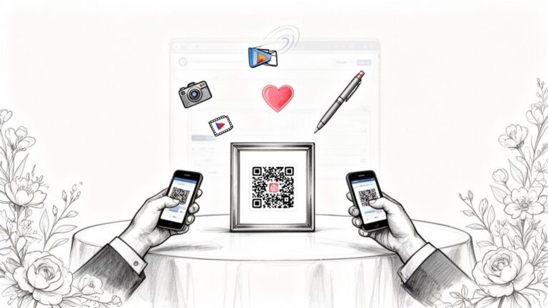 So, what exactly is an interactive wedding guest book? Think of it as taking the old-school sign-in book and giving it a massive upgrade. By using a simple QR code, your guests can upload photos, short video clips, and heartfelt messages straight from their phones. Instead of a book of just signatures, you get a living, breathing collection of memories from your big day.