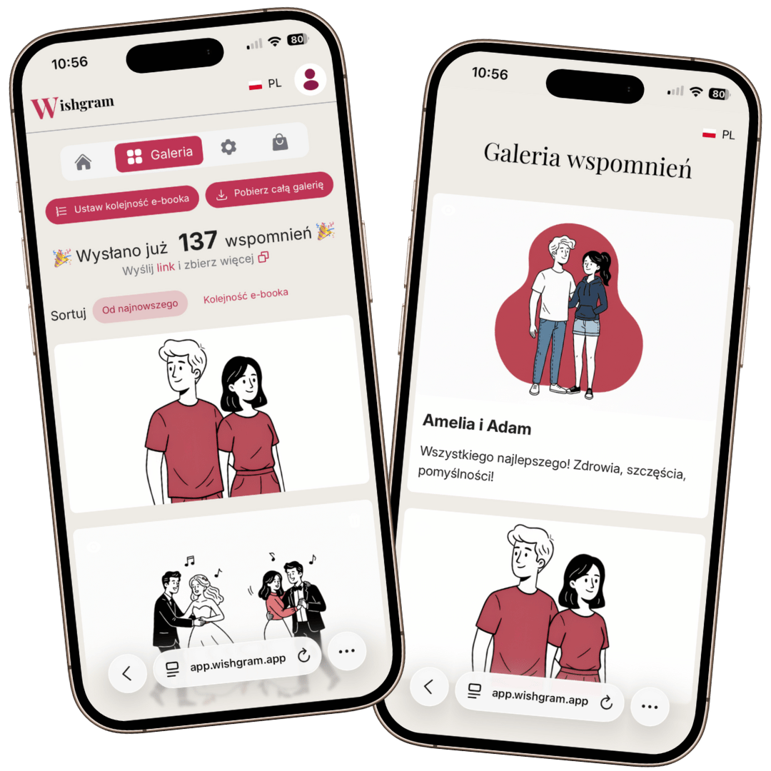 Pakiet Wishgram zawiera: platformę do wysyłania wspomnień, nielimitowana ilość wspomnień, personalizację aplikacji, galerie zdjęć, przygotowanie e-booka, dostęp do plików przez rok po wydarzeniu.