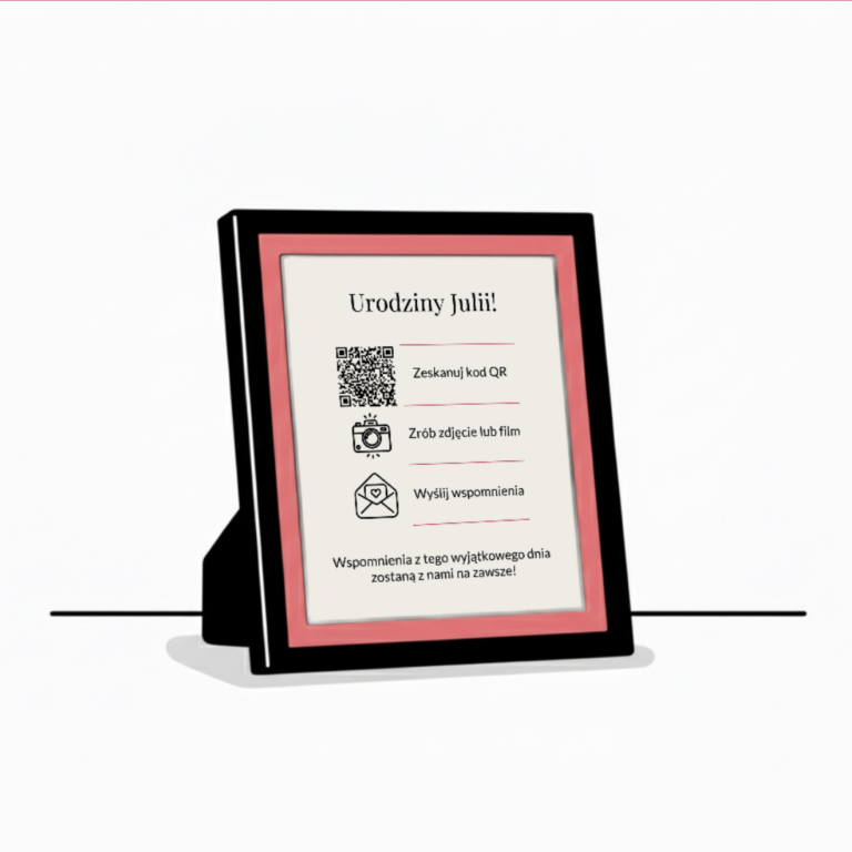 Zeskanuj kod QR lub kliknij w przycisk. Wyobraź sobie, że jesteś gościem, wyślij życzenia i zobacz, jak może wyglądać Twoja galeria i e-book ze zdjęciami i życzeniami